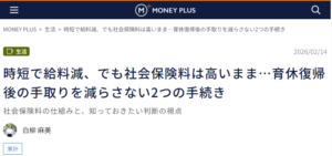 くらしの経済メディア『MONEY PLUS』(マネーフォワード社)執筆記事が掲載されました《育休復帰》